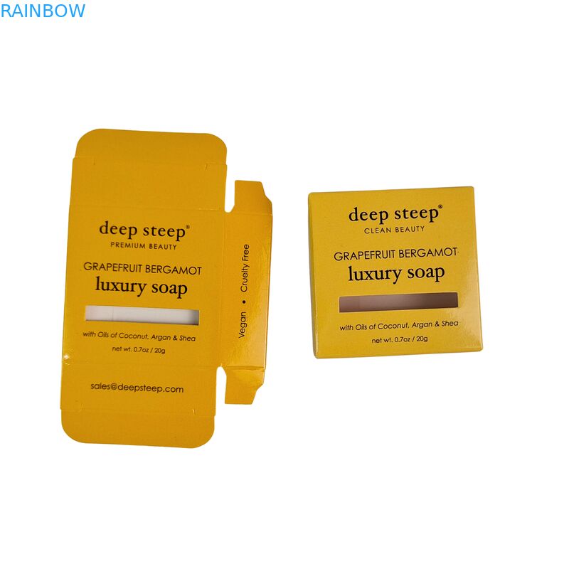 Wysokiej jakości biodegradowalne, składane pudełko kartonowe wykonane z papieru kraft z błyszczącą laminacją i wykończeniem UV. Idealne do luksusowych kosmetyków, pakowania mydła i wysokiej jakości dóbr konsumpcyjnych.