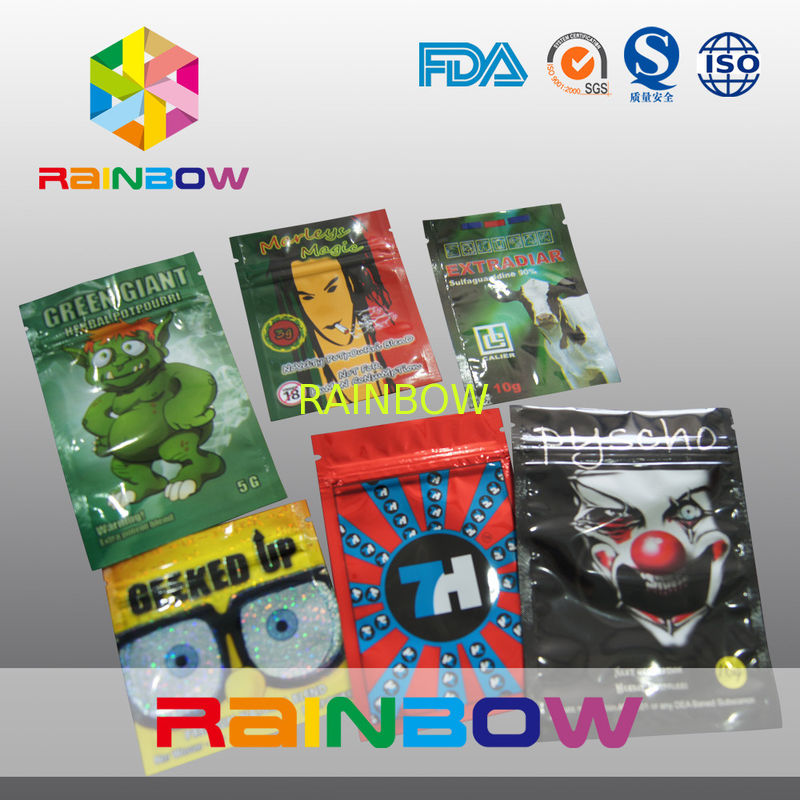 | Imię | kolorowy nadruk trzy boczne uszczelnienie opakowanie ziołowe kadzidło / przyprawa potpourri zipper bag |